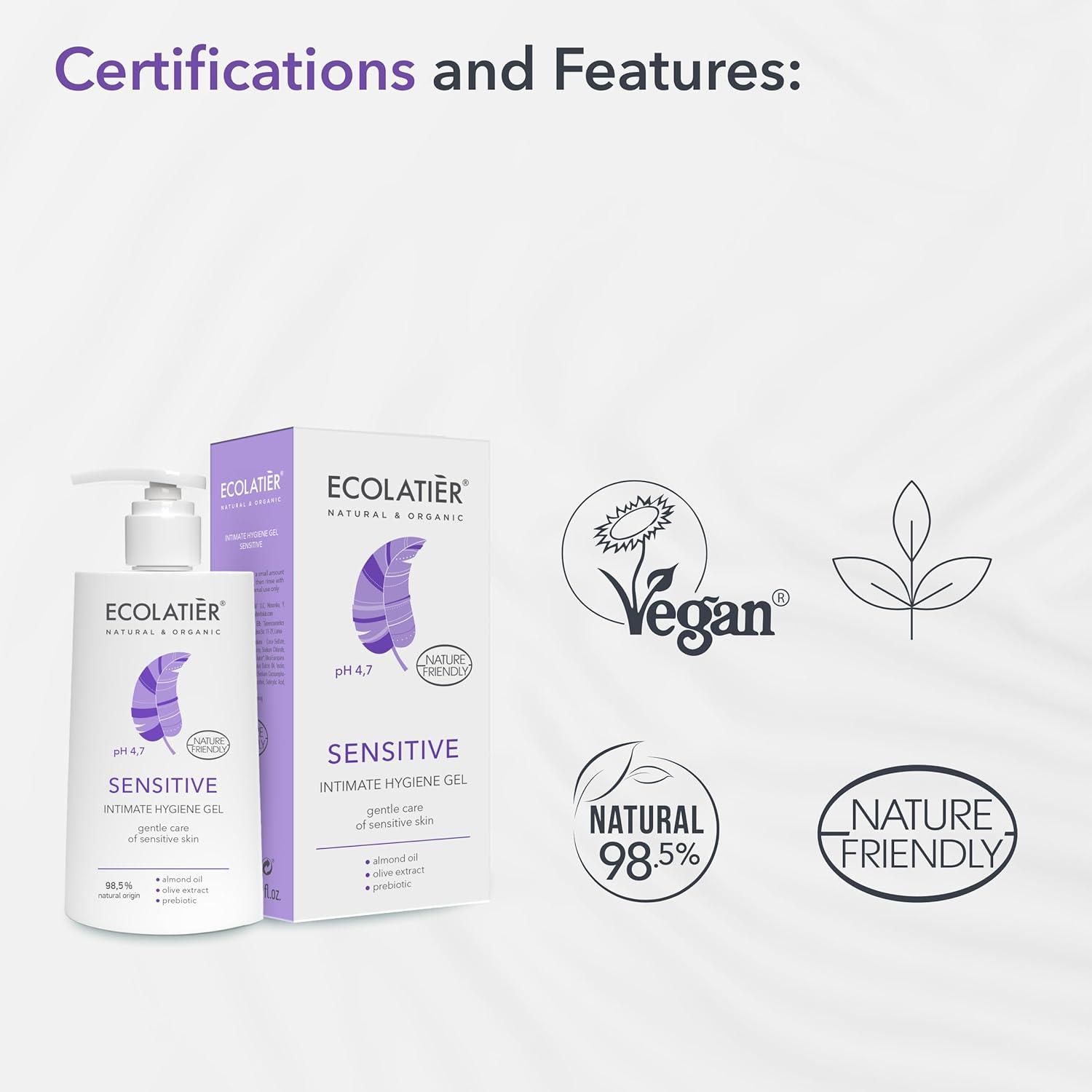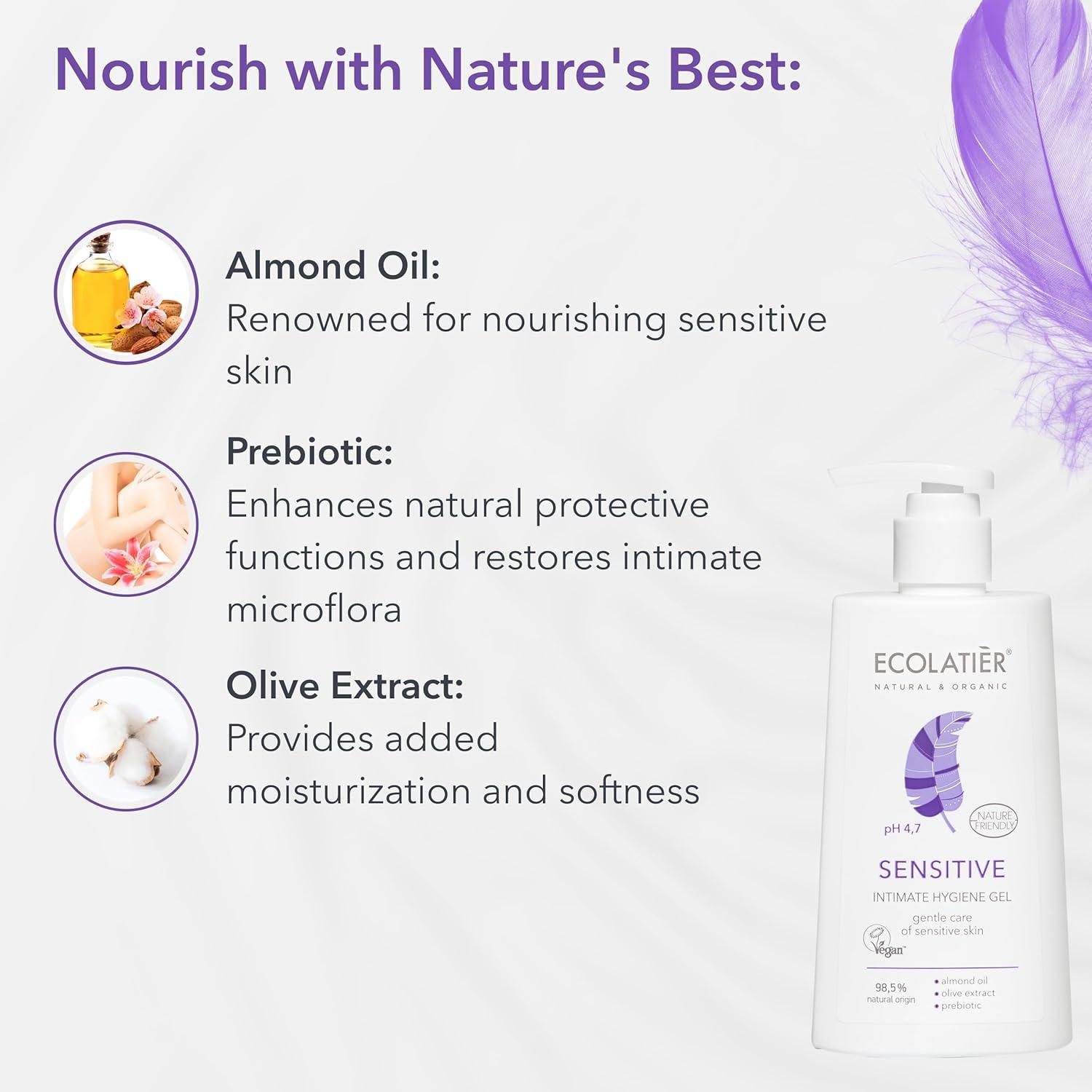 Intimate Hygiene Gel ECOLATIER®Sensitive with natural prebiotic and almond oil created specifically for daily cleansing of sensitive skin, provides an incredible refreshing and softening effect