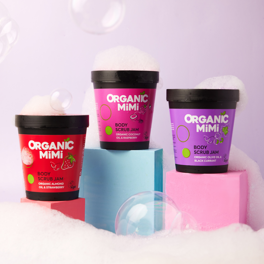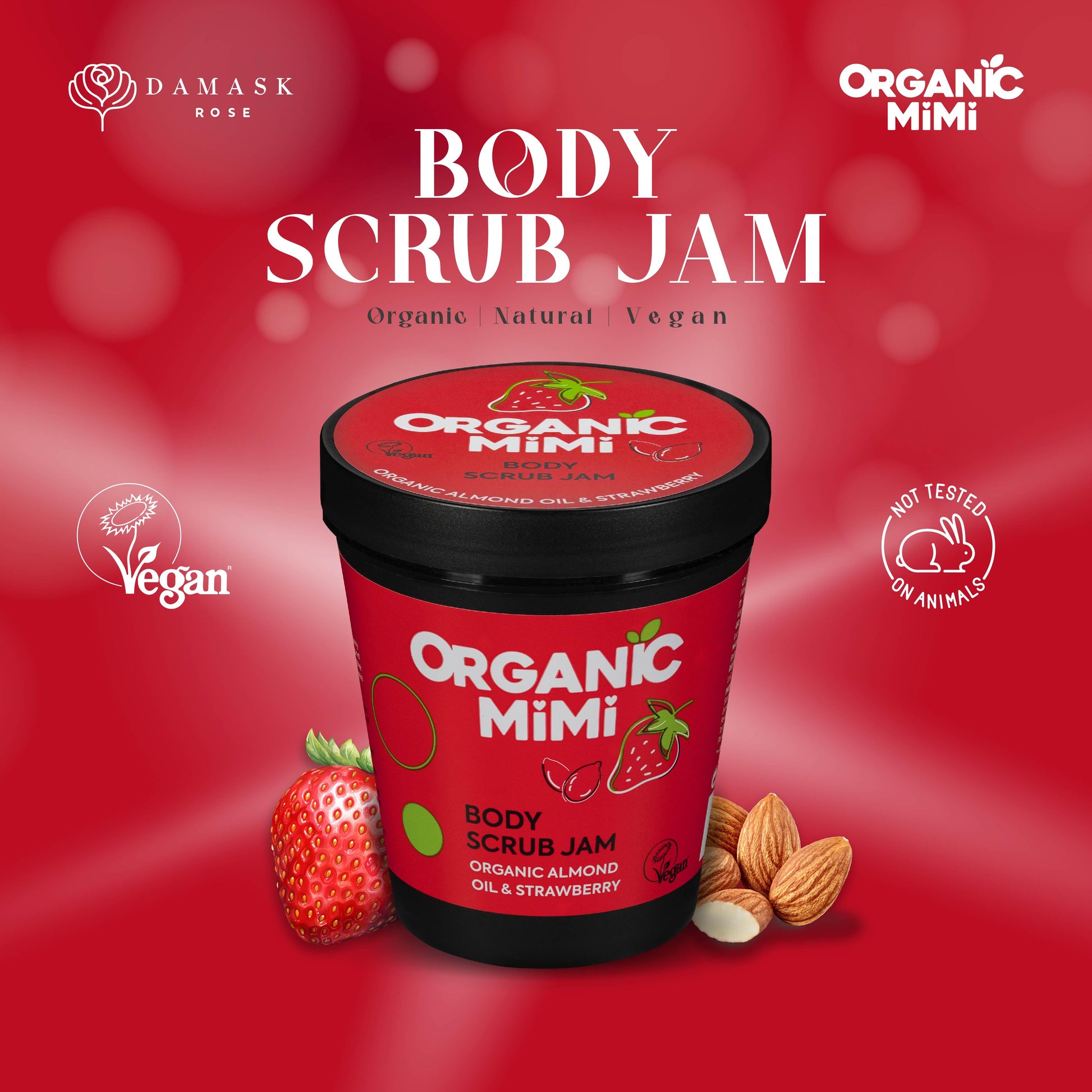 Organic Mimi, Body Scrub Jam Almond & Strawberry, 250 g